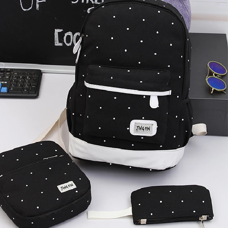 New 3pcs Set Women Canvas Backpack Big Student Book Bag with Purse Laptop Bag High Quality Ladies S